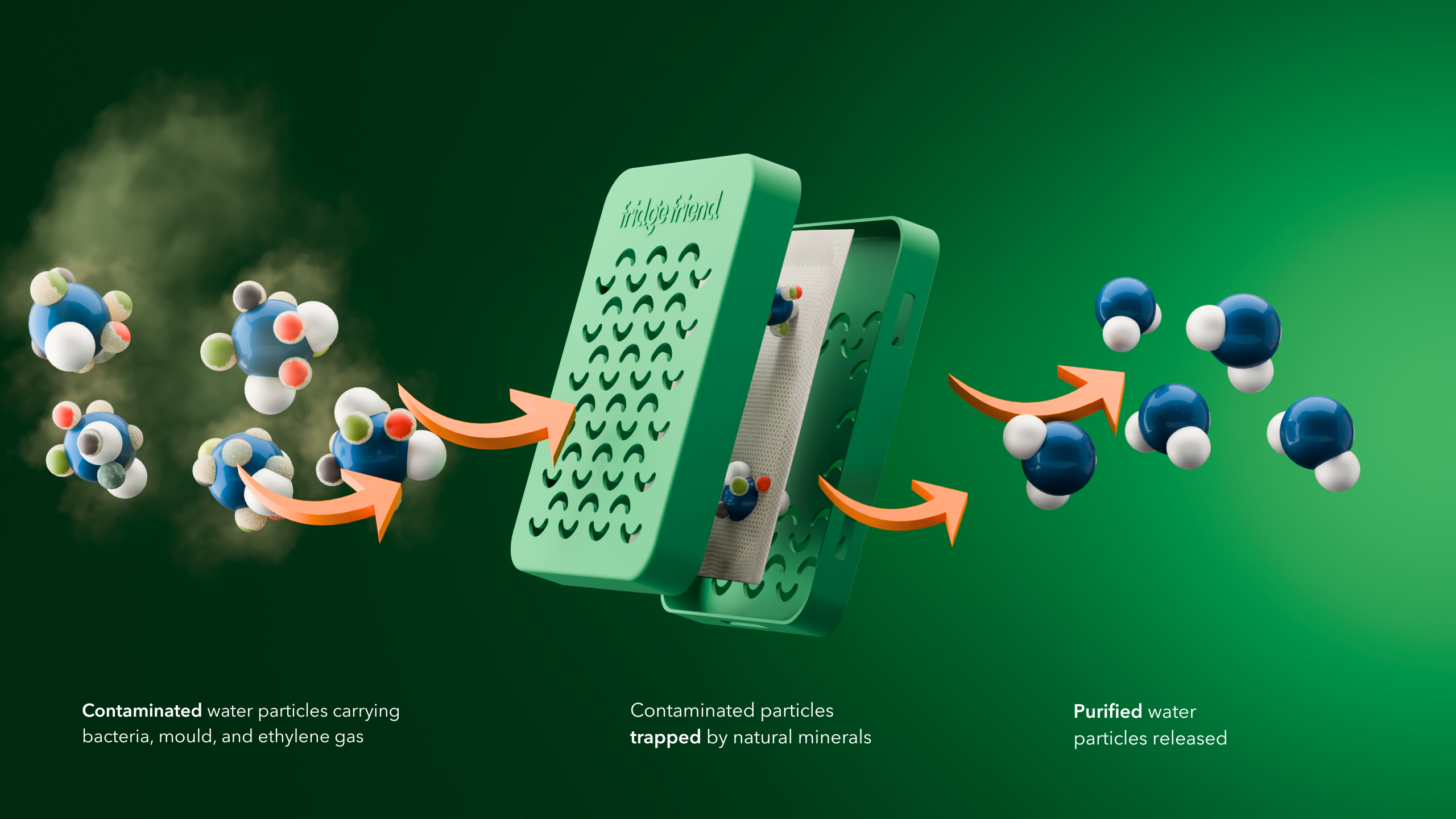 Fridge Friend is an innovative solution designed to combat the key factors that lead to food spoilage: ethylene gas, bacteria, odours, and excess moisture. Utilising a proprietary blend of 100% natural, unprocessed minerals, it works by absorbing these elements to create a more stable environment for your produce.