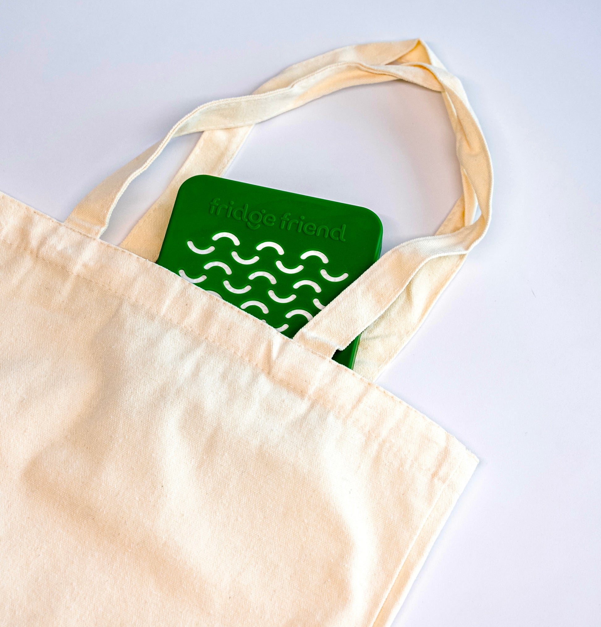 Fridge Friend cotton canvas shopping tote bags are ideal for your next fresh produce shop. Our high-quality, sturdy, reusable tote bags reduce the use of plastic and make shopping just that little bit easier.